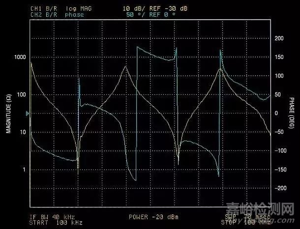 另外,無端接的傳輸線也是非常糟糕的負(fù)載,因?yàn)樗鼈儠?huì)帶來隨頻率而重復(fù)的“失控式”阻抗和相位變化 (見圖 7 中一根無端接 9 英尺電纜的阻抗)。