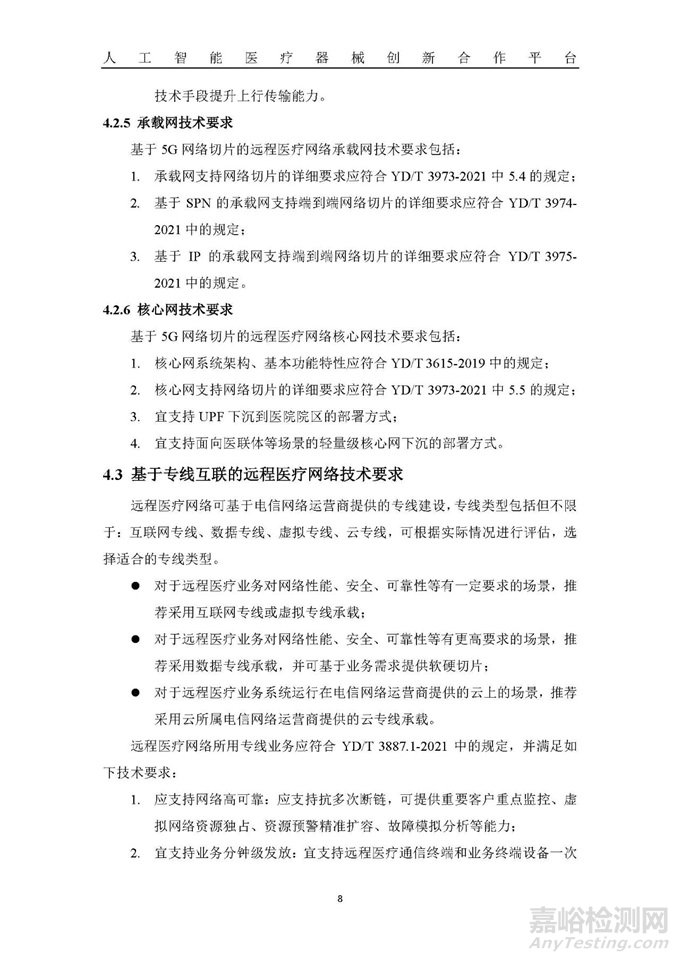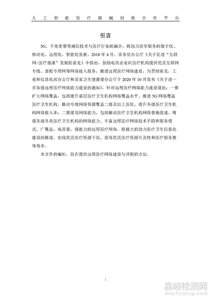 人工智能醫(yī)療器械創(chuàng)新合作平臺組織國內(nèi)多家網(wǎng)絡(luò)運(yùn)營商,共同編制《遠(yuǎn)程醫(yī)療網(wǎng)絡(luò)技術(shù)要求與測試方法》,為建設(shè)、評測、使用遠(yuǎn)程醫(yī)療網(wǎng)絡(luò)的相關(guān)企業(yè)與單位提供方法指南。