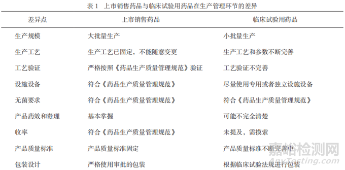 《藥物臨床試驗質(zhì)量管理規(guī)范》第八條規(guī)定,試驗藥物的制備應(yīng)當(dāng)符合臨床試驗用藥品生產(chǎn)質(zhì)量管理相關(guān)要求。目前,我國有2種臨床試驗用藥品生產(chǎn)模式,一是申請人自行生產(chǎn),另一種為申請人委托合同生產(chǎn)機構(gòu)(Contract ManufactureOrganization,CMO)生產(chǎn)。無論采取何種生產(chǎn)方式,上市許可持有人及生產(chǎn)研發(fā)企業(yè)均有義務(wù)保證試驗用藥品的質(zhì)量,確保相關(guān)原輔料采購、生產(chǎn)、包裝、保管、運輸、使用、管理環(huán)節(jié)文件的科學(xué)性、真實性和可追溯性[2-3]。借鑒歐洲藥品管理局(European MedicinesAgency,EMA)和美國食品藥品管理局(Food andDrug Administration,F(xiàn)DA)的監(jiān)督管理措施,發(fā)現(xiàn)臨床試驗用藥品與上市銷售藥品在生產(chǎn)管理方面有明顯差異,具體詳見表1。國家藥監(jiān)局出臺了相應(yīng)的制度規(guī)范,例如《臨床試驗用藥物生產(chǎn)質(zhì)量管理規(guī)范(征求意見稿)》(2018年7月)、《<藥品生產(chǎn)質(zhì)量管理規(guī)范>臨床試驗用藥品附錄(征求意見稿)》(2022年1月)、《中藥新藥臨床試驗用藥品的制備研究技術(shù)指導(dǎo)原則(征求意見稿)》(2022年9月)、《藥品共線生產(chǎn)質(zhì)量風(fēng)險管理指南》(2023年3月),用以加強生產(chǎn)監(jiān)管,有利于提高試驗用藥品生產(chǎn)質(zhì)量,夯實藥物臨床試驗的基礎(chǔ)[4-5]。FDA要求生產(chǎn)過程應(yīng)遵循書面生產(chǎn)和工藝控制操作規(guī)程,保留足以重復(fù)生產(chǎn)過程的記錄、中止該生產(chǎn)方法的解釋、操作規(guī)程和工藝變更原因。EMA指出,臨床試驗用藥品一般按每個受試者單獨包裝,應(yīng)做必要的物料平衡計算。