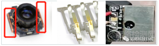 誤區(qū)二:部分?jǐn)z像頭模組也會(huì)采用另一種接地方式,利用PCB板子的邊緣漏銅,或者金屬?gòu)椘ヅc金屬外殼進(jìn)行接觸,甚至還有部分模組會(huì)在PCB上加一個(gè)金屬屏蔽罩,讓其與金屬外殼貼合,達(dá)到與金屬外殼接觸的目的。這類(lèi)措施比起直接用螺絲孔接觸外殼的方式,接地效果會(huì)好很多,但也存在一定的不足,例如PCB板邊緣漏銅去接觸金屬外殼,因?yàn)榻Y(jié)構(gòu)原因,實(shí)際接觸并不良好;金屬?gòu)椘油鈿?,采用的是單點(diǎn)單個(gè)接觸;屏蔽罩貼合金屬外殼看似完美,實(shí)際應(yīng)用的并不多。