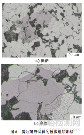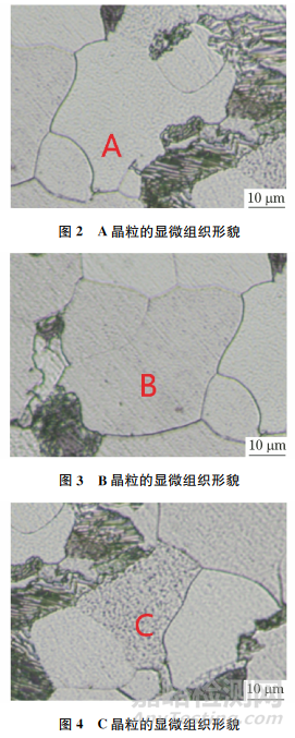 金相試樣表面拋光劃痕殘留,引起表面粗糙度較大,造成了漫反射現(xiàn)象,最終導致晶粒發(fā)灰。采用延長拋光時間、減小拋光力度、使用更小粒度的拋光膏等措施可以使鐵素體晶粒表面劃痕變淺,劃痕較為細小,從而得到絕大多數(shù)呈亮白色的鐵素體,提高了金相檢驗結果的準確性。