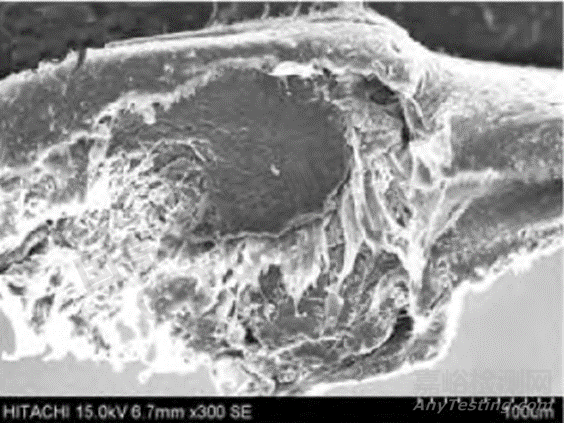 取透氣膜兩處不同缺陷位置,通過DSC、SEM、徠卡光學(xué)顯微鏡等方法,逐步分析缺陷產(chǎn)生原因。