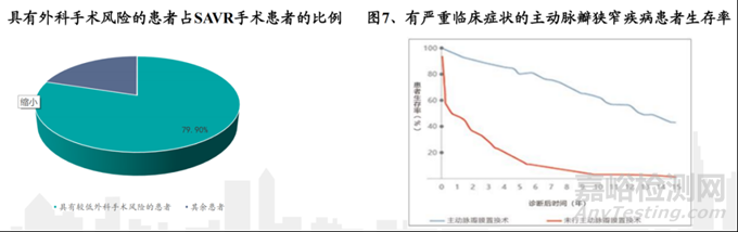 主動(dòng)脈瓣狹窄主要由風(fēng)濕熱的后遺癥、先天性主動(dòng)脈瓣結(jié)構(gòu)異?;蚶夏晷灾鲃?dòng)脈瓣鈣化所致。治療方式主要是是主動(dòng)脈瓣膜置換手術(shù)(TAVR)和傳統(tǒng)開胸外科手術(shù)(SAVR)。TAVR是全球領(lǐng)先的心血管介入技術(shù),通過血管路徑植入人工瓣膜以治療主動(dòng)脈瓣狹窄,具有患者創(chuàng)傷較小及術(shù)后恢復(fù)期較短的優(yōu)勢(shì)。目前,在SAVR手術(shù)的患者中具有較低外科手術(shù)風(fēng)險(xiǎn)的患者占到約80%,隨著適應(yīng)癥的擴(kuò)大將較大幅度提升TAVR手術(shù)的可適用人群。從對(duì)有嚴(yán)重臨床癥狀的主動(dòng)脈狹窄疾病患者的調(diào)查來看,進(jìn)行主動(dòng)脈瓣置換術(shù)能大幅度提高患者生存率。對(duì)不能手術(shù)的重度主動(dòng)脈瓣狹窄患者,TAVR與藥物治療相比可降低病死率46%
