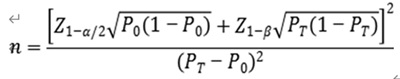 公式中,n為樣本量;Z1-α/2、Z1-β為顯著性水平和把握度的標準正態(tài)分布的分數(shù)位,P0為評價指標的臨床可接受標準,PT為試驗體外診斷試劑評價指標預(yù)期值。