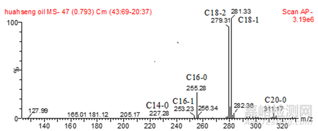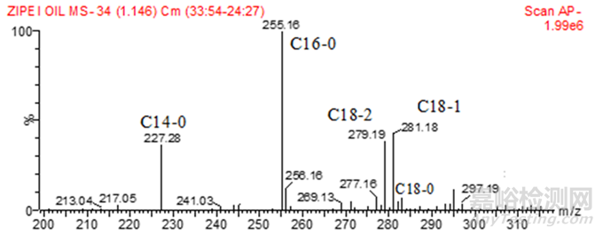 花生油的質(zhì)譜圖(負(fù)離子模式)