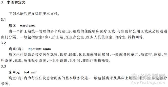 2. 病室(房):病區(qū)內(nèi)住院患者接受醫(yī)學(xué)觀察、診療、睡眠、休息和就餐的房間,一般配備床單元、隔離簾、座椅、呼叫系統(tǒng)、氧源、負壓吸引系統(tǒng)、手衛(wèi)生設(shè)施、衛(wèi)生間、非醫(yī)療廢物桶等。