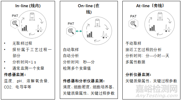 FDA提出的PAT技術(shù)包括3種類(lèi)型:線內(nèi)檢測(cè)(in-line)、在線檢測(cè)(on-line)、近線檢測(cè)(at-line)。