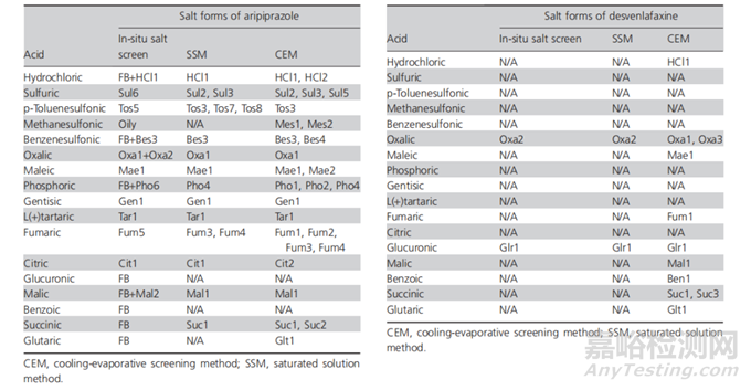 2.飽和溶液法和冷卻-蒸發(fā)法適用于形成不同鹽型的篩選。