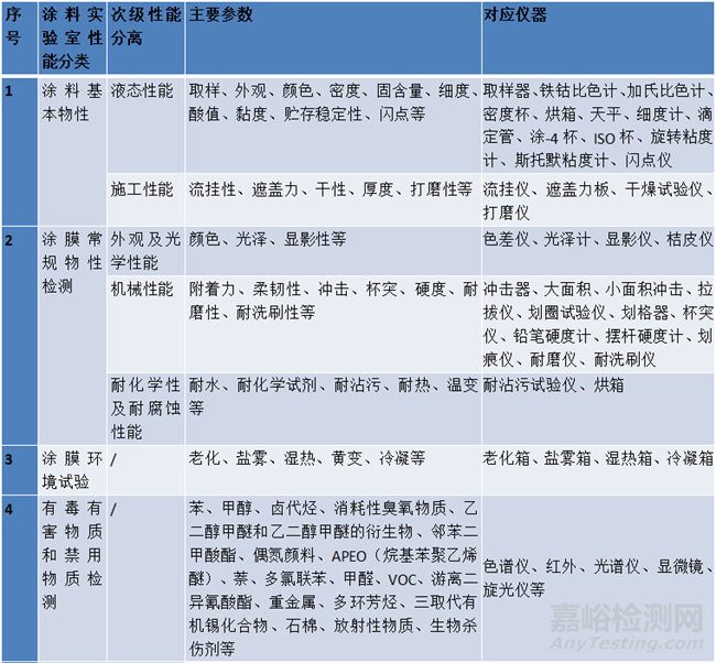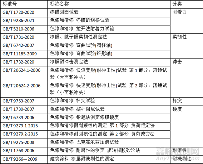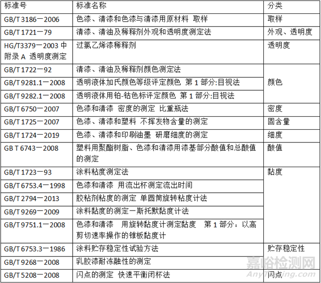 涂料檢測方法標(biāo)準(zhǔn)按照檢測項(xiàng)目大體可以分為以下五類:
