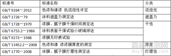 表3:涂料施工性能常用標(biāo)準(zhǔn)