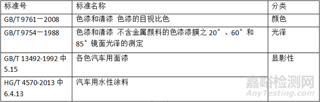 表4:涂料外觀及光學(xué)性能常用標(biāo)準(zhǔn)
