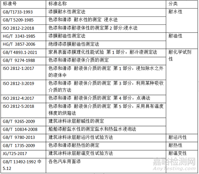 表6:涂料耐化學(xué)性及耐腐蝕性能常用標(biāo)準(zhǔn)