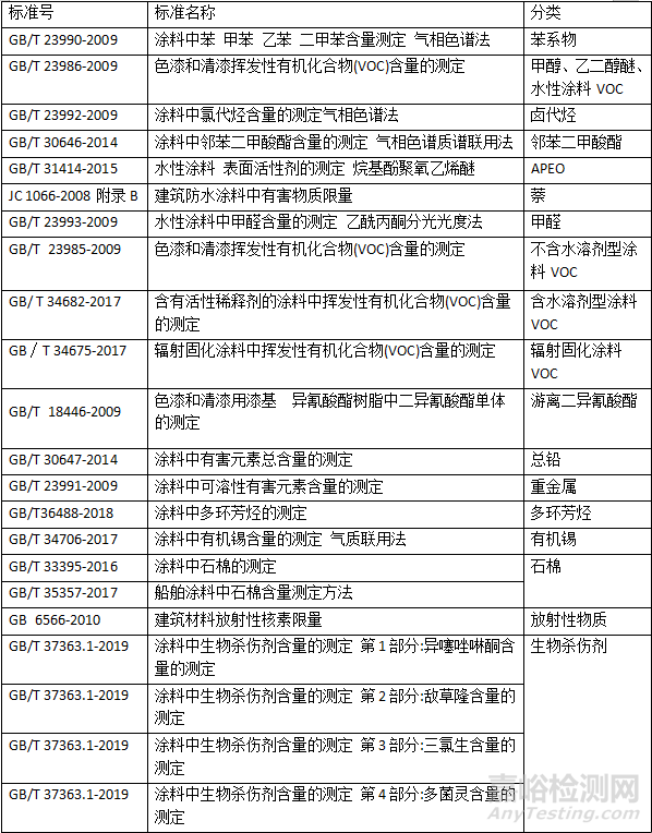 表8:涂料有毒有害物質(zhì)和禁用物質(zhì)檢測常用標(biāo)準(zhǔn)