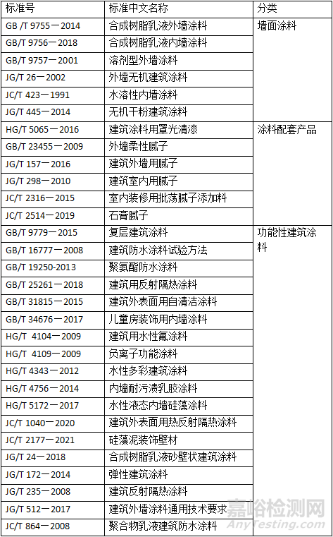 2.涂料檢測產(chǎn)品標(biāo)準(zhǔn)