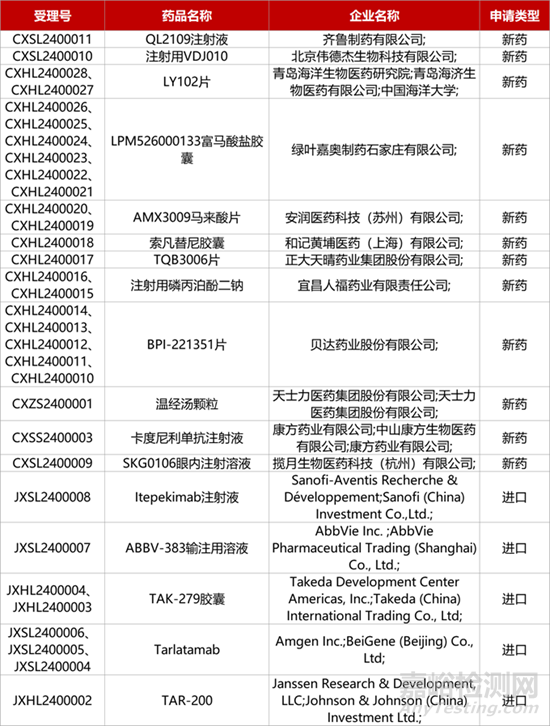 1. CDE新藥受理情況(01月06日)