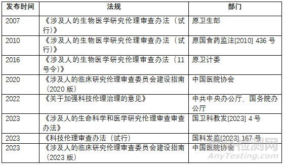 藥物開(kāi)展臨床試驗(yàn)需要經(jīng)過(guò)IND和倫理審查的雙重同意方可開(kāi)展進(jìn)行,IND由藥監(jiān)機(jī)構(gòu)負(fù)責(zé)審批(國(guó)內(nèi)已實(shí)行默示許可制度),倫理審查一般由研究機(jī)構(gòu)設(shè)立的倫理委員會(huì)把關(guān)。關(guān)于倫理審查有關(guān)的法規(guī),從2007年的《涉及人的生物醫(yī)學(xué)研究倫理審查辦法(試行)》至今已有9部相關(guān)法規(guī)意見(jiàn)等發(fā)布。