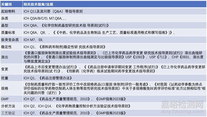 表4列出了各關(guān)鍵詞涉及的常見(jiàn)法規(guī)指南技術(shù)要求,供同行讀者參考,不斷提高和完善藥學(xué)研究。