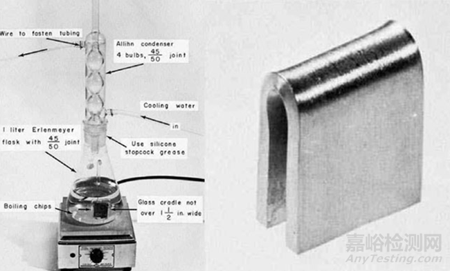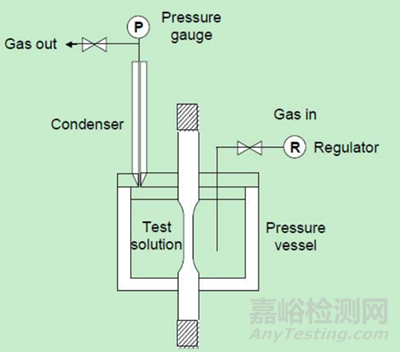 將試樣裝在試驗(yàn)裝置上,試驗(yàn)溶液加熱至沸騰后注入試驗(yàn)容器并加熱,待到再開始沸騰時(shí)立即加載。從加載到試樣斷裂的時(shí)間作為破斷時(shí)間或根據(jù)協(xié)商確定試驗(yàn)時(shí)間及周期,試驗(yàn)結(jié)束后檢查有無裂紋。