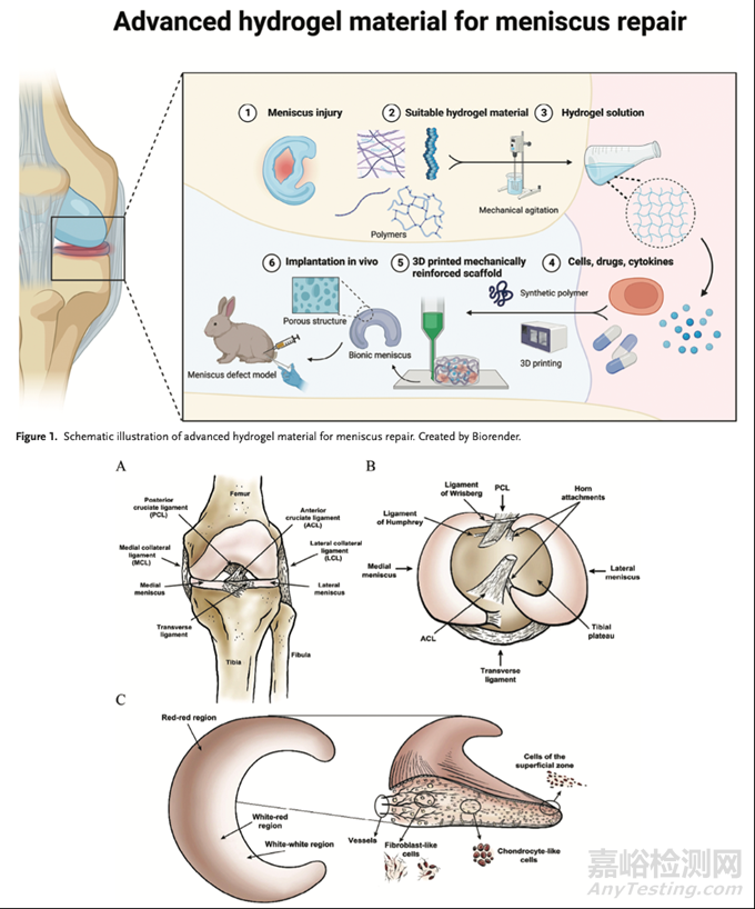 再生醫(yī)學(xué)的基礎(chǔ)是研究和發(fā)展替代、修補(bǔ)、重建或再生人體不同組織及器官的假設(shè)和方法。由于半月板中央部分纖細(xì),而且整個(gè)半月板沒有連接,因此傳統(tǒng)療法在恢復(fù)半月板結(jié)構(gòu)和功能方面較為困難。醫(yī)用水凝膠有望為半月板修復(fù)和再生提供一種新的策略。水凝膠具有較強(qiáng)的生物相容性和可調(diào)控性,可安全植入體內(nèi),有效改變半月板損傷部位細(xì)胞微環(huán)境和生理變化。近日,來(lái)自北京大學(xué)的余家闊教授團(tuán)隊(duì)進(jìn)行了先進(jìn)水凝膠材料用于半月板修復(fù)的相關(guān)綜述。成果以“Meniscal fibrocartilage regeneration inspired by meniscal maturational and regenerative process”為題于01月03日發(fā)表在《Advanced Functional Materials》上。