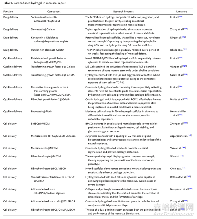 2. 水凝膠作為半月板修復(fù)的生物材料