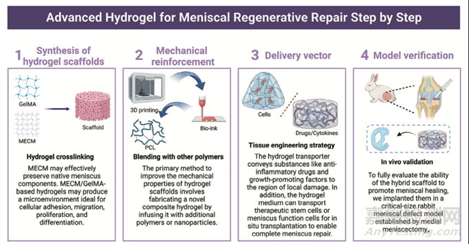 圖9 先進(jìn)水凝膠促進(jìn)半月板修復(fù)步驟示意圖