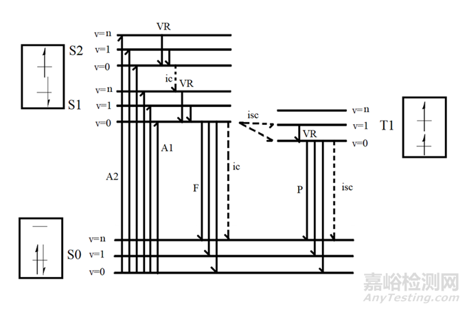此時如果電子躍遷到基態(tài),并以輻射形式放出能量,稱為熒光(F)。
