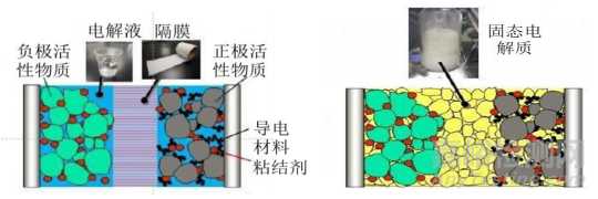 液態(tài)/固態(tài)電池結(jié)構(gòu)示意圖
