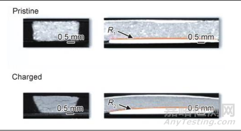 LiCoO2/Li10GeP2S12/In 電池在充電前后的截面 X 射線斷層成像