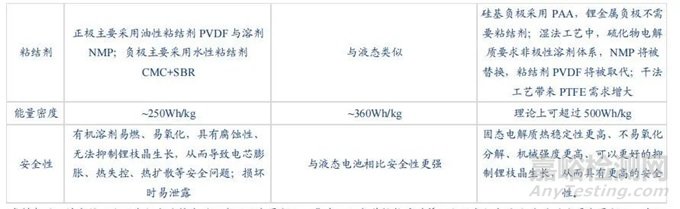 眾所周知的是,固態(tài)電解質(zhì)本身不能提升能量密度。但是相比較電解液,固態(tài)電解質(zhì)具備更穩(wěn)定、更安全,電化學(xué)窗口寬(5V以上)等性質(zhì),因此可以兼容高比容量的正負(fù)極,比如高電壓正極、富鋰基、硅負(fù)極、鋰金屬負(fù)極等材料,進而大幅提升電芯能量密度。從電池結(jié)構(gòu)上看:固態(tài)電解質(zhì)將電解液的隔膜功能合二為一,大幅縮小正負(fù)極間距,從而降低電池厚度,因此提升電芯體積能量密度;外傳統(tǒng)液態(tài)鋰離子電池的電解液具有流動性,內(nèi)部的堆疊串聯(lián)很容易發(fā)生短路,從而引發(fā)自放電和放熱。固態(tài)電解質(zhì)不具備流動性,固態(tài)電池可以實現(xiàn)電芯內(nèi)部的串聯(lián)、升壓,可以降低電芯的包裝成本,并升體積能量密度。