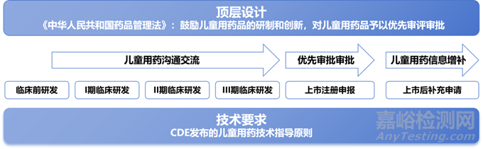 即,我國兒童用藥的注冊管理體系基本可以分為三個板塊:研發(fā)階段的溝通交流、上市申報的優(yōu)先審評審批和上市后的補充兒童用藥信息,其中每一個過程都相互鏈接,且離不開CDE發(fā)布的相關(guān)兒童用藥技術(shù)指導原則,整體結(jié)構(gòu)如下圖所示: