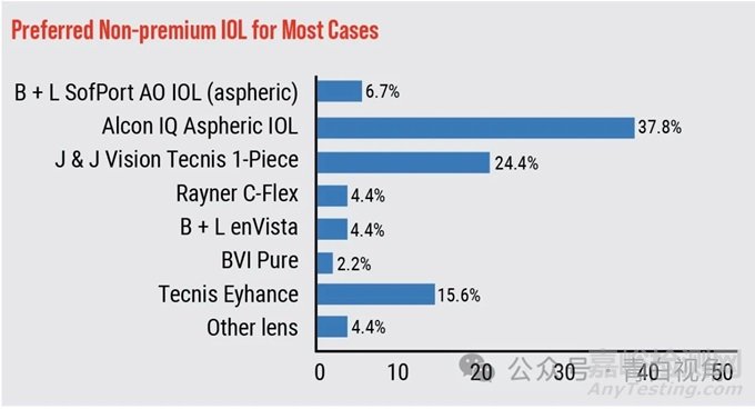 偏好理由:“卓越的視覺、穩(wěn)定的性能以及出色的患者治療效果,而且不會(huì)閃輝。” ;“透明、無閃輝、居中良好、具有非常好的預(yù)裝系統(tǒng)、具有出色的光學(xué)性能、耐刮擦且具有負(fù)球差非球面性”。