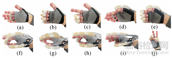 康復(fù)手勢(shì)測(cè)試如圖4所示。設(shè)計(jì)的康復(fù)手套展現(xiàn)出了卓越的靈活性,能夠有效地支持典型的手勢(shì)。該手套使用戶(hù)能夠執(zhí)行廣泛的手指運(yùn)動(dòng),成功完成繁瑣的手指捏動(dòng)作,從而證明其在康復(fù)訓(xùn)練中具有顯著效果。