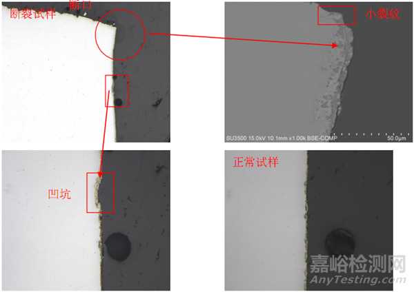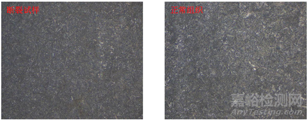 對(duì)斷裂與正常試樣金相組織進(jìn)行分析,結(jié)果如圖7所示: