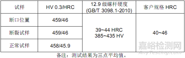 2.客戶(hù)技術(shù)要求與GB/T3098.1-2010有差異,建議客戶(hù)在產(chǎn)品設(shè)計(jì)時(shí)嚴(yán)格按照國(guó)標(biāo)規(guī)定執(zhí)行,避免高硬度的潛在脆性斷裂風(fēng)險(xiǎn)。