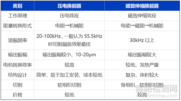 超聲換能器是超聲振動單元的核心部件,將超聲頻電能轉(zhuǎn)換成超聲振動的高頻機(jī)械能,并通過變幅桿進(jìn)行振幅放大和聚能后再傳輸?shù)降额^。超聲換能器主要有壓電換能器和磁致伸縮換能器兩大類。