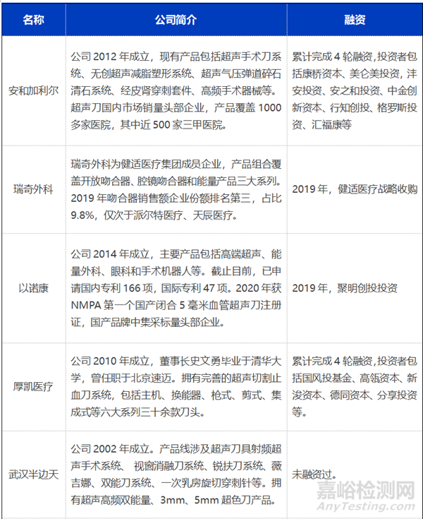 ▲ 表10 國產(chǎn)超聲刀代表性廠家