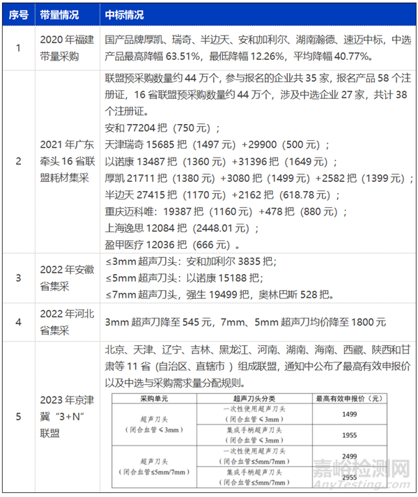 ▲ 表11 超聲刀頭集采情況(2020-2023,部分)