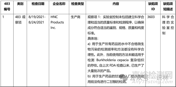 表1. 近兩年Lisa L. Flores所發(fā)的483基本情況和缺陷項(xiàng)梳理(部分展示)