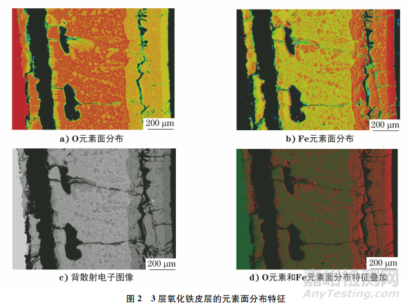 氧化鐵皮各層的測試數(shù)據(jù)可為研究表面附著氧化鐵皮的相變行為、控制不同工藝參數(shù)以及提高熱軋鋼板外觀質(zhì)量提供參考和指導(dǎo)。除氧化鐵皮外,這些方法也可以用于鋼鐵的腐蝕分析。