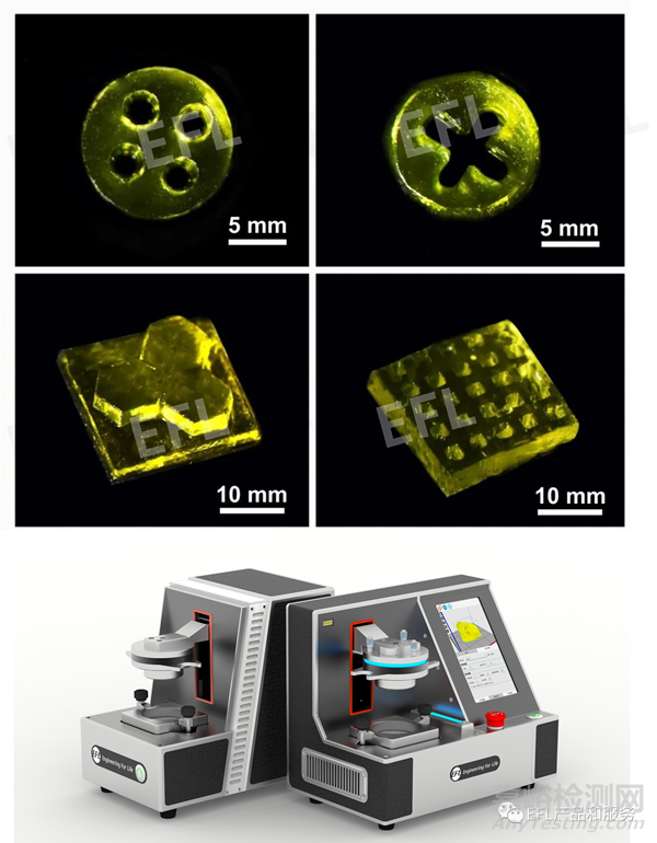 EFL-SilMA-001水凝膠固化迅速且具有可調(diào)的機(jī)械性能,其在投影式光固化3D打?。―LP)應(yīng)用上呈現(xiàn)優(yōu)秀的成型效果。配合EFL團(tuán)隊(duì)研發(fā)的EFLBP8601 Pro系列光固化生物3D打印機(jī),可輕松實(shí)現(xiàn)SilMA的復(fù)雜結(jié)構(gòu)制造。