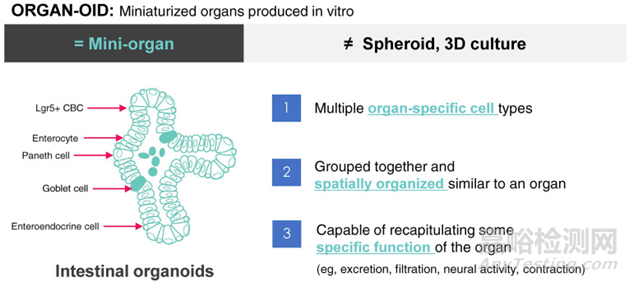 類器官不同于細胞球體,它是部分或全部的多細胞結構。類器官是體外小型化和簡化的三維結構,具有構成器官的多種器官特異性細胞類型。類器官應該滿足:1)它們由靶器官的細胞組成;2)具有靶器官的特定結構;3)它們可以再現(xiàn)靶器官的特定功能。球體模擬實體瘤用于癌癥治療,類器官則提供了研究器官對象的形態(tài)、功能和疾病相關模型。
