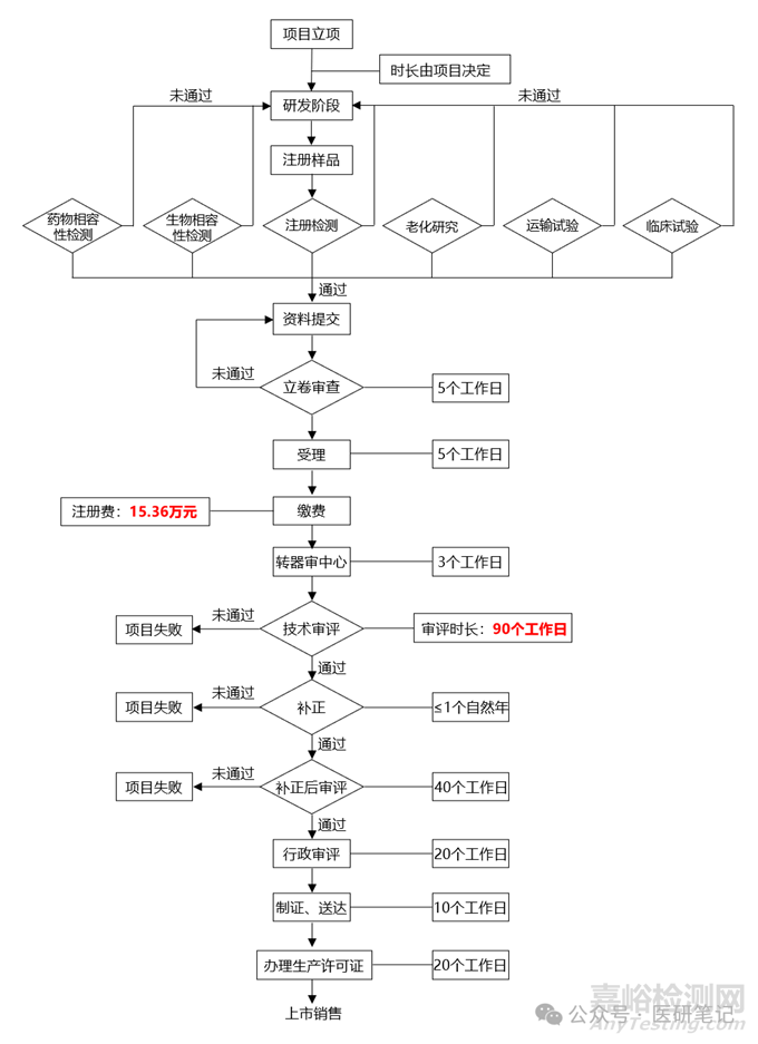 完成所有研究和獲得相對應(yīng)的性能測試工作,整理好注冊資料,按照eRPS系統(tǒng)要求提交注冊資料。這一階段的費用為15.36萬元,審查時間為90個工作日。