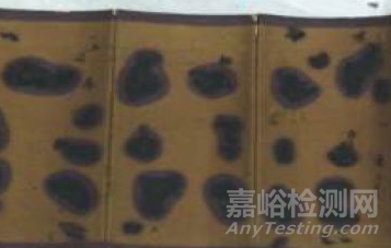 原理:本圖片來自于一款文武之前遇到的新材料體系中試圖片,電芯批量低容,50%的電芯拆解后有以上負(fù)極黑點(diǎn)異常。由于當(dāng)時(shí)分析手段有限,截止到目前也只能推測這次黑點(diǎn)異常與上面的黑斑異常原理接近,一些化成時(shí)的不充分條件如低溫、不合適的電流或SOC等造成了黑點(diǎn),“點(diǎn)”與“斑”的差異只是同一問題的不同表象。