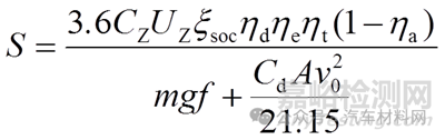式中,S為續(xù)駛里程,m;CZ為電池組容量,Ah;UZ為電池組電壓,V;ξsoc為蓄電池放電深度,%;ηd為蓄電池放電效率,%;ηe為電機(jī)及控制器整體效率,%;ηt為傳動系統(tǒng)效率,%;ηa為汽車附件能量消耗比例系數(shù);v0為車速,km/h;m為整備質(zhì)量,kg;g為重力加速度,取9.8 m/s2;f為滾阻系數(shù);Cd為風(fēng)阻系數(shù);A為迎風(fēng)面積,m2。