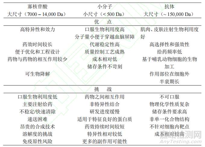 質(zhì)量控制方面,大部分可參考ICH Q系列[5],包括穩(wěn)定性可參考ICH Q1、方法驗(yàn)證可參考ICH Q2、雜質(zhì)(殘留溶劑、元素)ICH Q3C和Q3D、2020版《中國藥典》、原料藥GMP指南ICH Q7、致突變雜質(zhì)可參考ICH M7;對于有機(jī)雜質(zhì)ICHQ3A和Q3B可能不太適用,特別是與寡核苷酸藥物相關(guān)的雜質(zhì),比如N-1,N-X,N+X等相關(guān)雜質(zhì),因?yàn)楣押塑账崴幬锱c小分子藥物有一定的區(qū)別,通常情況下寡核苷酸藥物分子量明顯大于小分子藥物(下圖是寡核苷酸藥物與小分子藥物的區(qū)別),寡核苷酸藥物的分子量通常大于小分子藥物,小于抗體藥物,寡核苷酸藥物的分子量通常在7000~14000Da,而小分子藥物通常小于500Da,這也就意味著若雜質(zhì)控制完全按照小分子藥物雜質(zhì)去控的話,可能過于嚴(yán)格;而針對該類藥物的雜質(zhì)限度并沒有相應(yīng)的法規(guī),目前可參考的主要是一些文獻(xiàn),比如OSWG對寡核苷酸藥物的雜質(zhì)進(jìn)行討論,并發(fā)表了一篇關(guān)于寡核苷酸藥物雜質(zhì)的文獻(xiàn)[6],在這篇文獻(xiàn)中,OSWG給出了關(guān)于寡核苷酸藥物的雜質(zhì)決策樹,OSWG推薦鑒定限為1.0%,界定限為1.5%,給出的理由是寡核苷酸藥物的分子量為5000Da,而小分子藥物的分子量為500Da,兩者相差10倍,即1.0%的雜質(zhì)數(shù)量與小分子藥物0.1%相當(dāng);而多肽類藥物的鑒定限為0.5%,界定限為1.0%,目前行業(yè)內(nèi)更多是參照多肽類藥物的雜質(zhì)限度進(jìn)行界定。