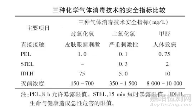 對(duì)于人類來(lái)說(shuō),暴露在一定濃度水平的消毒氣體中是有害健康的,這個(gè)濃度水平因不同的氣體而不同。根據(jù)美國(guó)職業(yè)安全與健康管理局( OSHA)公布的數(shù)據(jù),現(xiàn)將甲醛熏蒸、二氧化氯氣體、汽化過(guò)氧化氫三種消毒技術(shù)安全性方面的指標(biāo)比較見(jiàn)表。