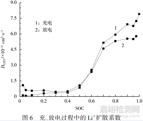 2.3 充放電過程對Li+擴(kuò)散系數(shù)的影響