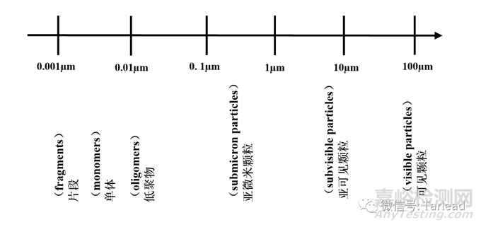 隨著分散系物理化學(xué)狀態(tài)的變化,當(dāng)形成聚體的分子增加時,導(dǎo)致聚體直徑越來越大,逐漸形成亞可見顆粒甚至可見顆粒;當(dāng)抗體分子斷裂成片段或其糖鏈發(fā)生降解??赡軐?dǎo)致溶液顏色變深。如圖2所示:片段為1-10nm,單體(Monomers)為5-15nm,低聚物為10-100nm,亞可見顆?;虿蝗苄晕⒘?0-100μm,可見顆?;蚩梢姰愇餅榇笥诘扔?0μm。