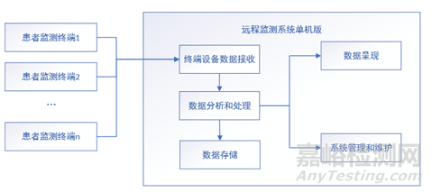 本指導(dǎo)原則所指的遠(yuǎn)程監(jiān)測(cè)系統(tǒng)通常指采用無(wú)線/有線通信技術(shù)對(duì)患者生理參數(shù)進(jìn)行實(shí)時(shí)/非實(shí)時(shí)遠(yuǎn)程傳輸,以實(shí)現(xiàn)對(duì)患者進(jìn)行監(jiān)測(cè)的系統(tǒng)。