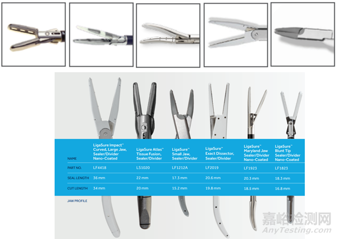 圖3.美敦力LigaSure不同鉗口示例